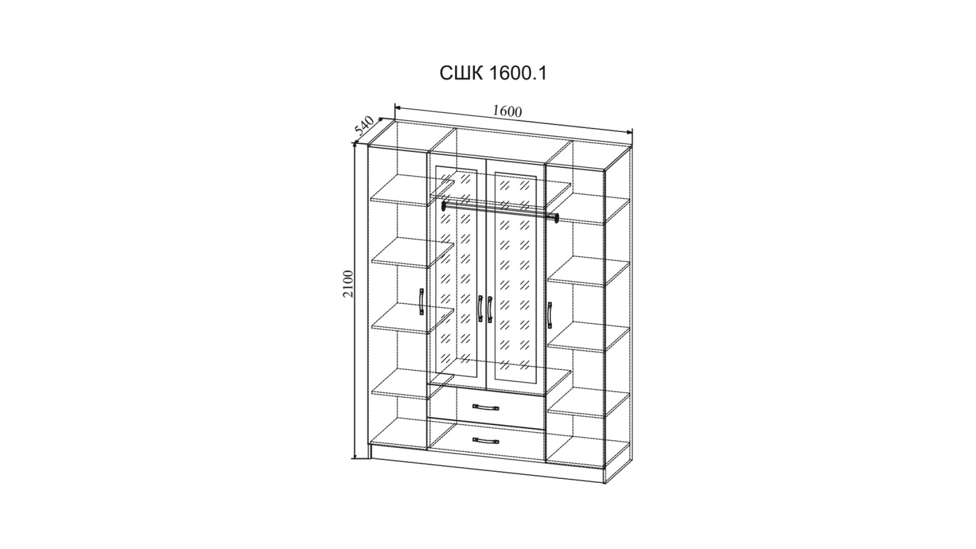 Высота: 2100 мм / Ширина: 1600 мм / Глубина: 540 мм